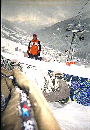 Die Helden sind müde ... aber das Boardbabe in grau haben wir nicht entkommen lassen- wozu ist man denn konkreter Freecarve-Raceboarder mit Vmax=c [ 3 km Jagd die Bernkogel ´runter, jawoll-und stolz drauf ]!
